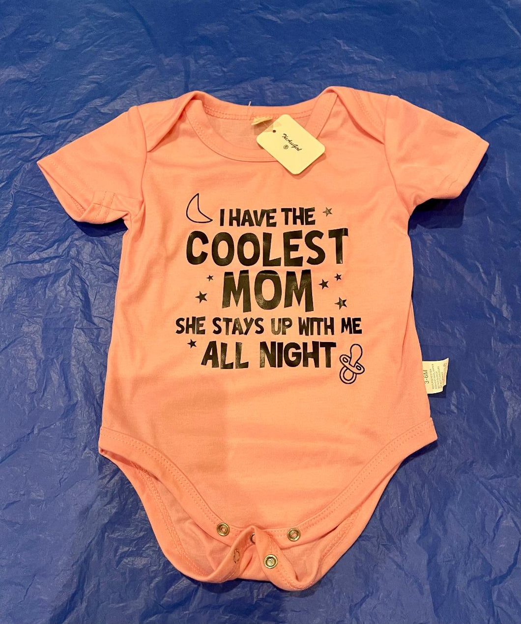 Peach "I have the coolest mom" baby onesie for 3-6MO